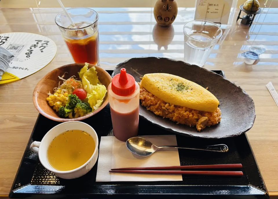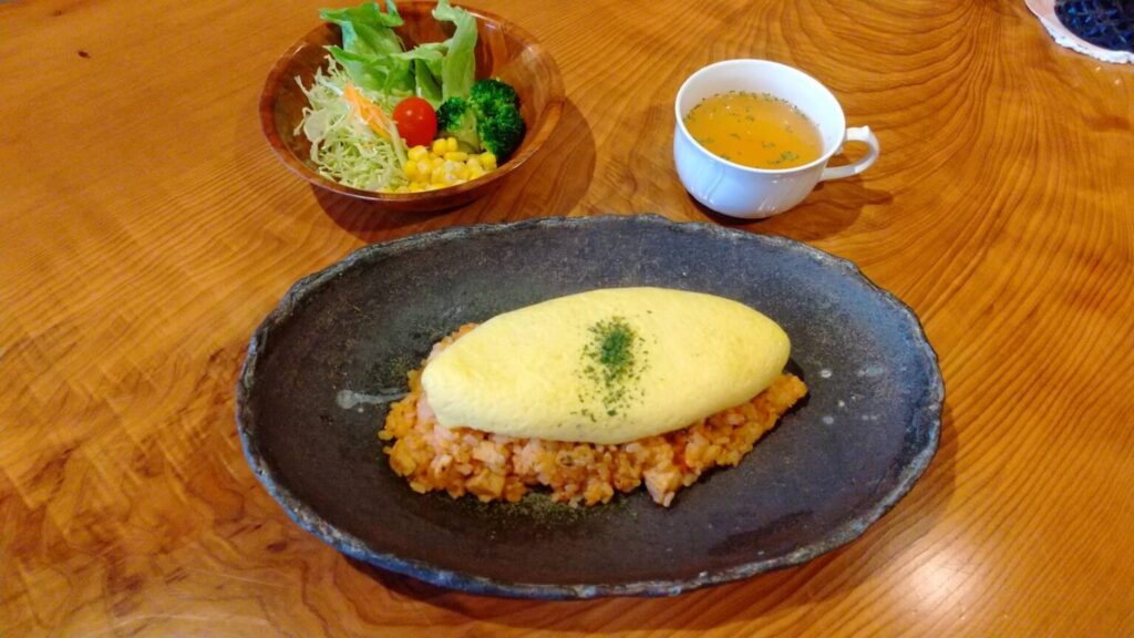 オムレツから溢れ出るふわふわの卵をチキンライスに絡めてご堪能ください。