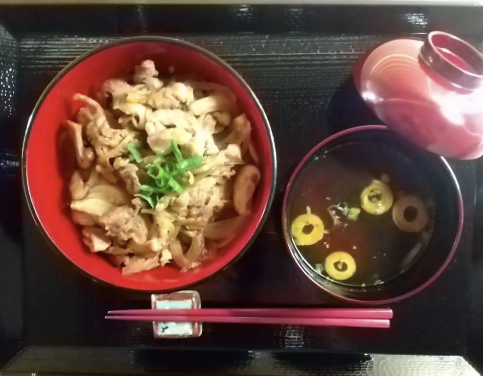塩麹の旨みでさっぱり美味しい豚丼。味噌汁付き